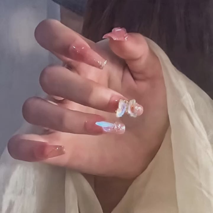 【Hand made】Handmade Press-On Nails with Rotating Butterfly