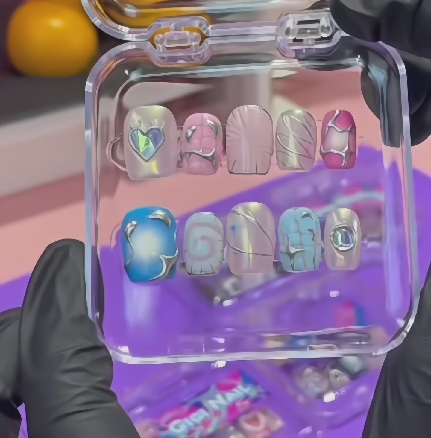 Blue Heart & Pink Sparkle Patch Glue Nails will make you shine and sparkle! These handmade nails feature a stunning blue heart and pink sparkle patch design for a unique look. You can also enjoy customizing the design within 40 days.