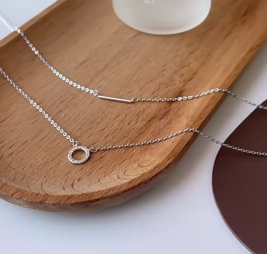 - S925 Sterling Silver Double Layered Necklace Circle Pendant